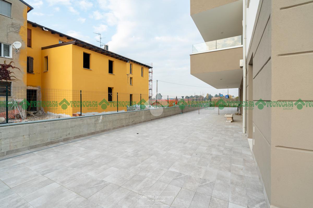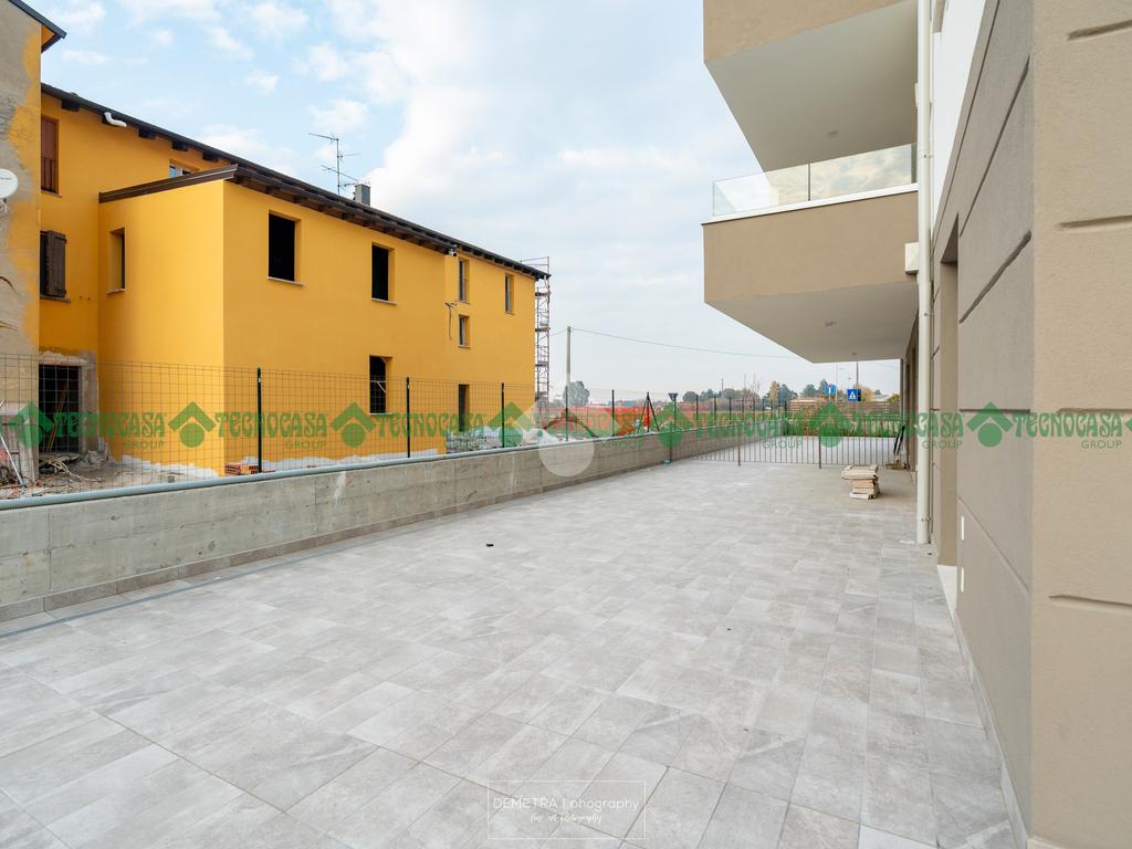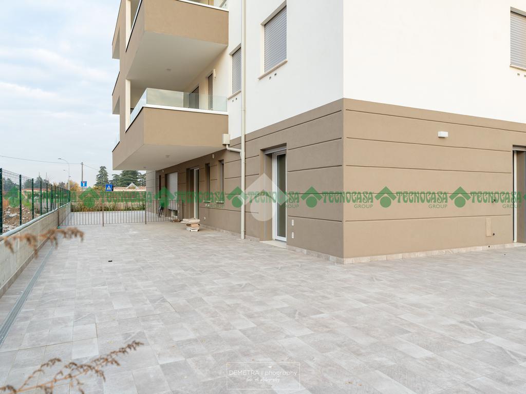 Ultima disponibilità, tipologia con 2 camere da letto, con ampio giardino angolare privato pavimentato. Ogni unità immobiliare ha abbinata una autorimessa.