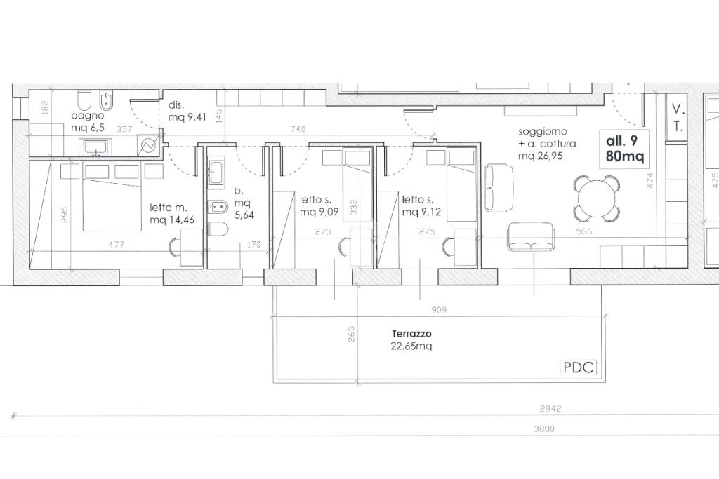 A9-> PIANO SECONDO, QUADRILOCALE DI MQ 123 CON TERRAZZO DI MQ 24. CANTINA E GARAGE.